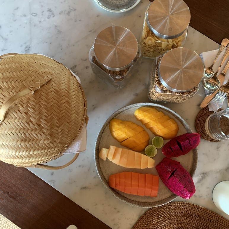 조식포함인 에어비앤비인데요. 항상 전날 다음날 조식 시간을 체크하러 온답니다. 그래서 전날 미리 시간을 알려주면 세팅을 해주고, 시리얼과 우유, 매일 바뀌는 과일주스, 과일, 빵 그리고 오트밀은 선택사항입니다.